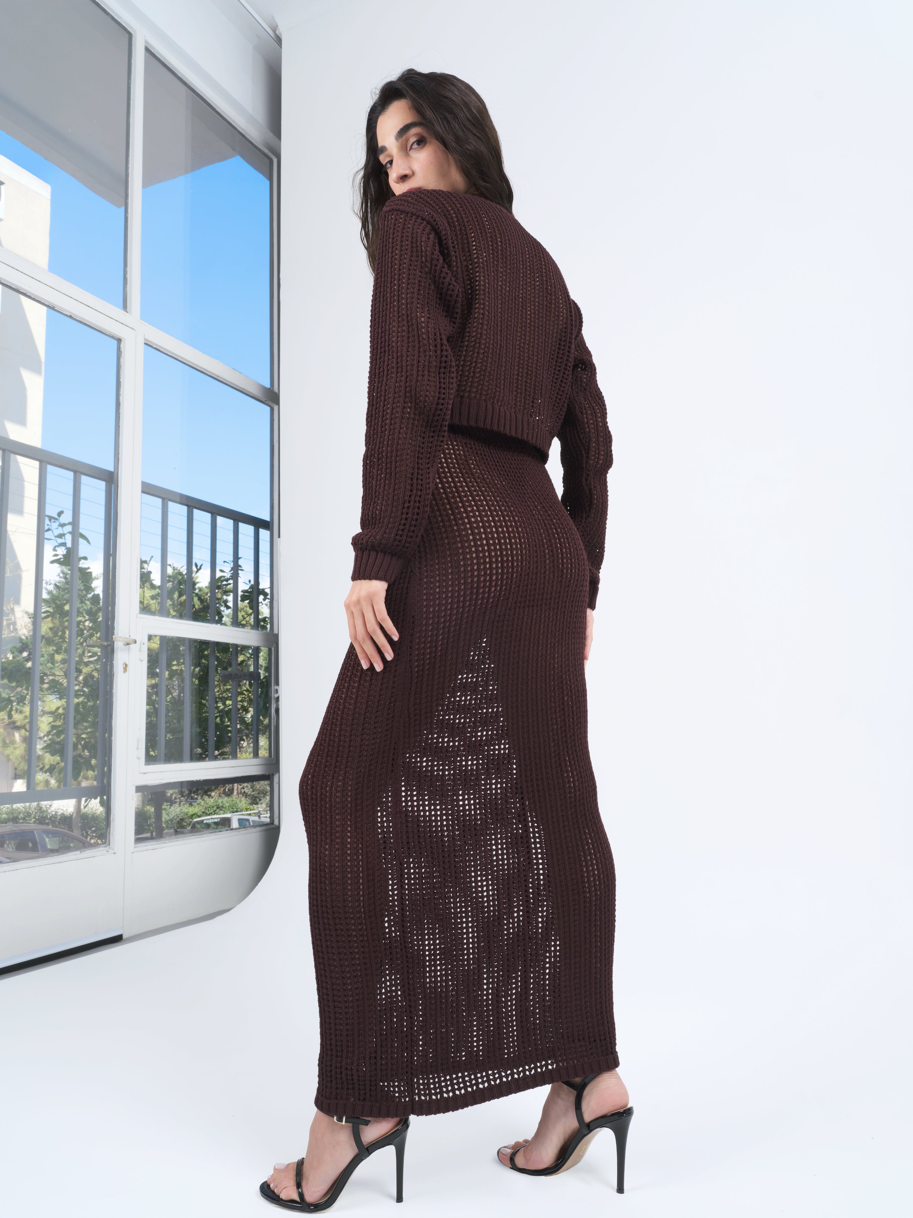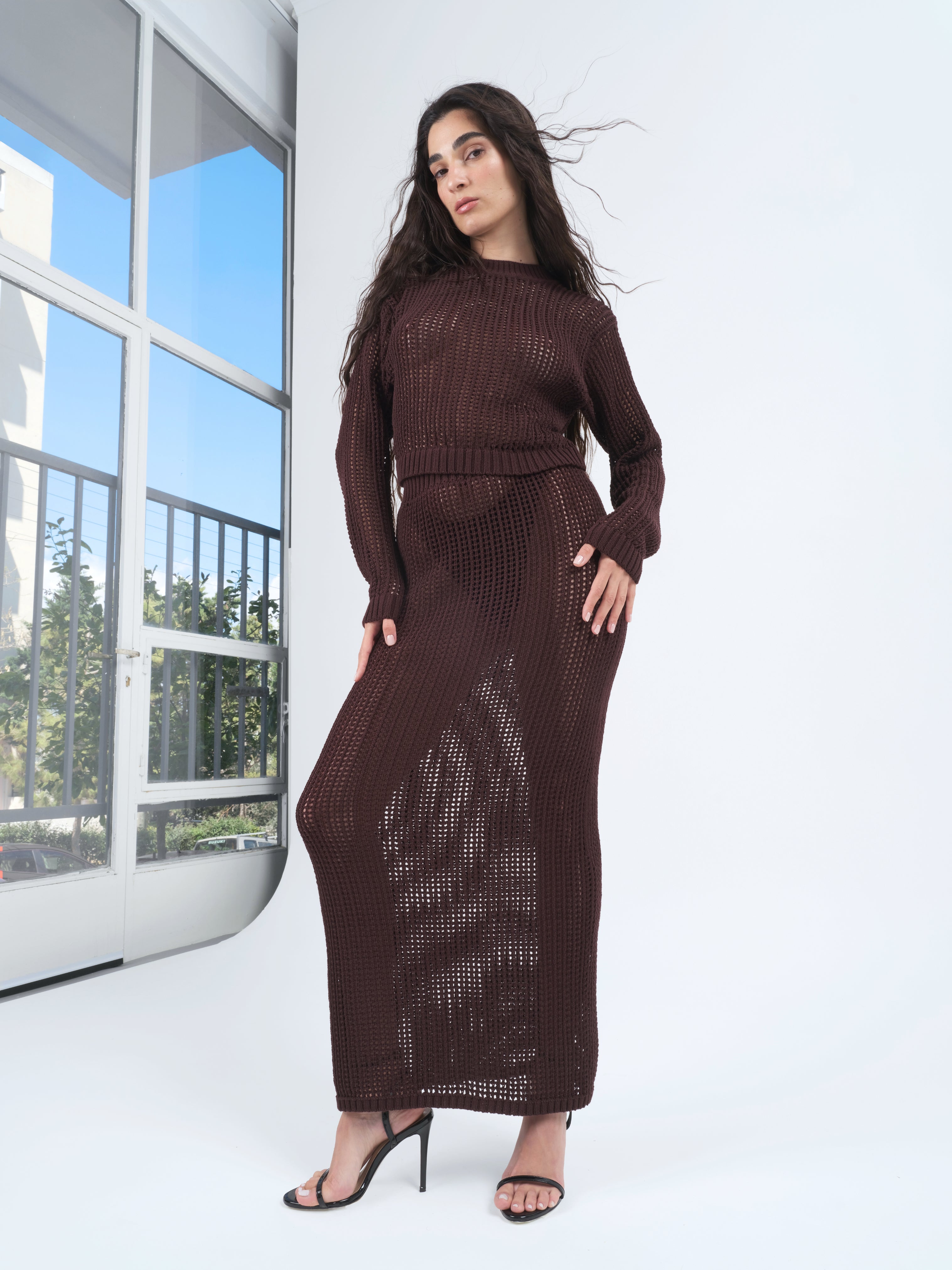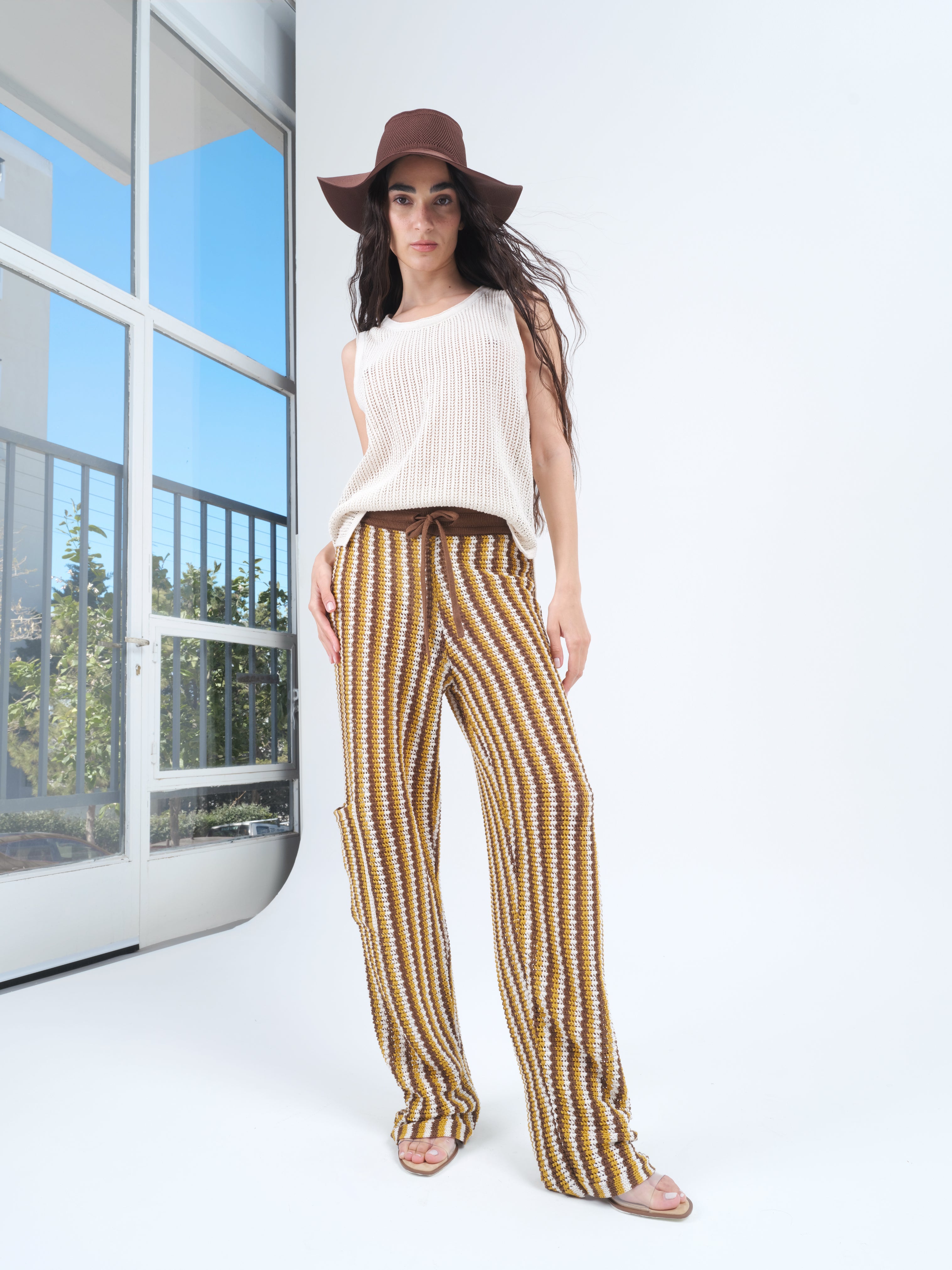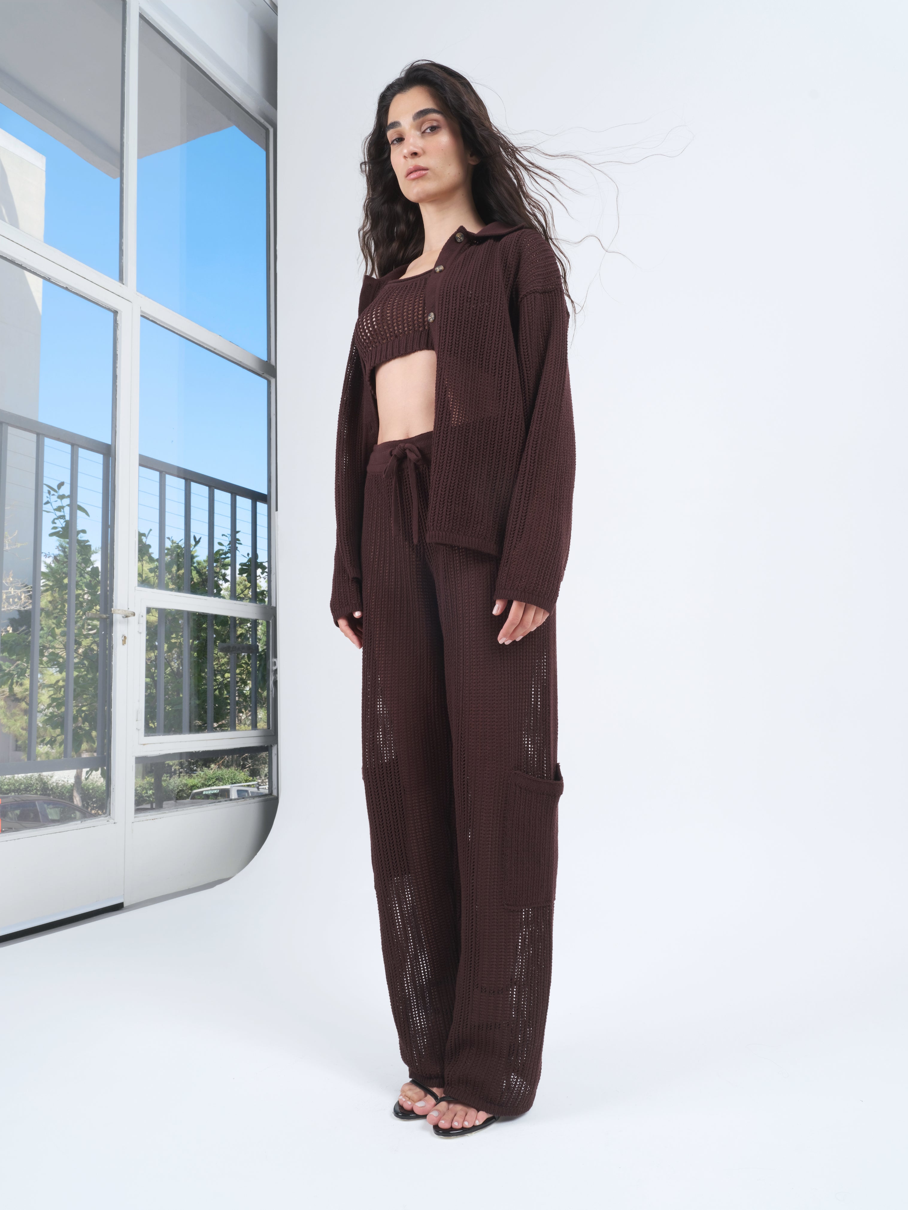 Softness is reimagined through structured openwork, set against the raw simplicity of organic cotton .