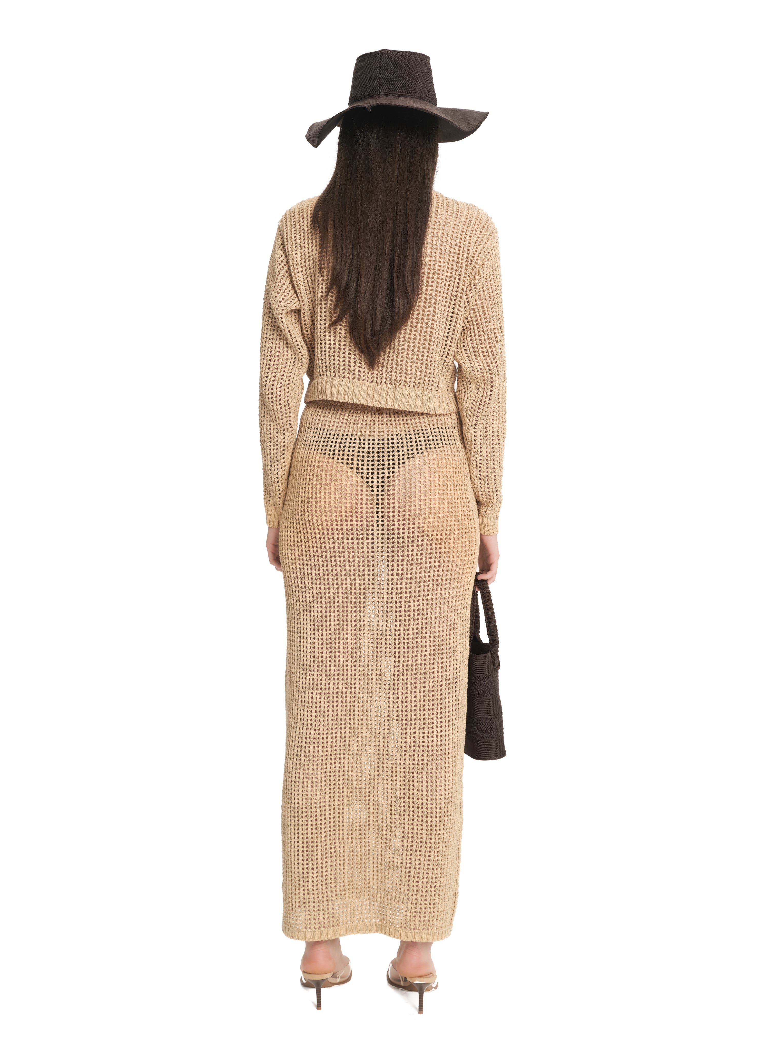 Knitted Maxi Skirt crafted from 100% organic cotton. Features an all-over mesh structure for texture. See through effect for a dynamic look. Elastic waistband for maximum support and a subtle ribbed hem to add a refined touch.